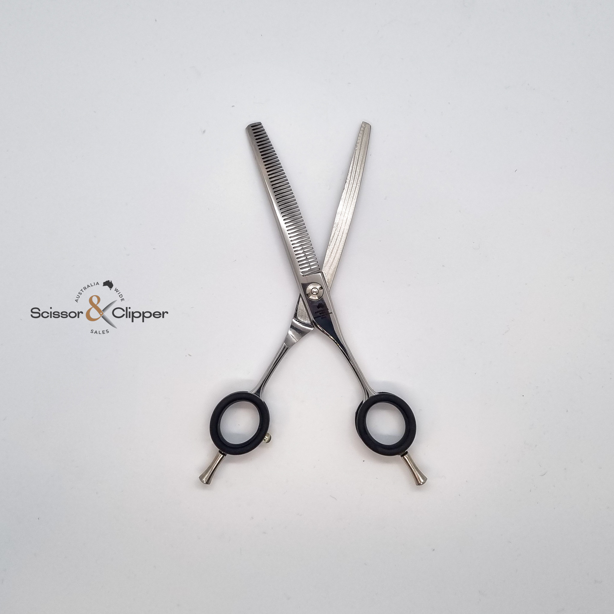 The curved design of the blade on these scissors allows the groomer to cut the dog’s coat in a natural, flowing motion, which is ideal for blending and thinning out the fur. The thinning teeth along the edge of the blade are designed to remove a small amount of hair with each cut, which allows the groomer to control the amount of hair being removed and create a natural-looking texture in the coat.